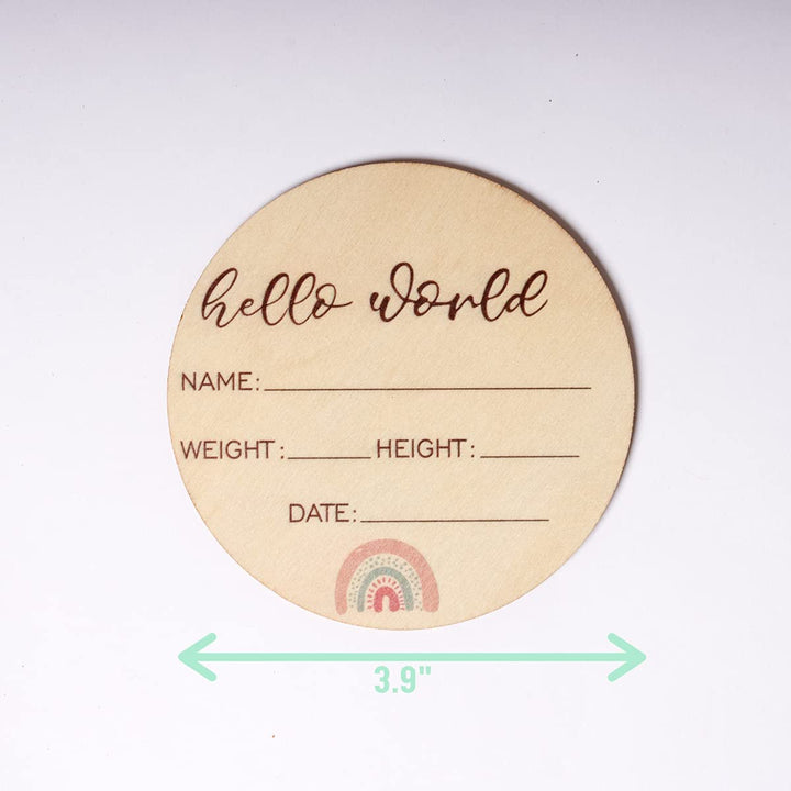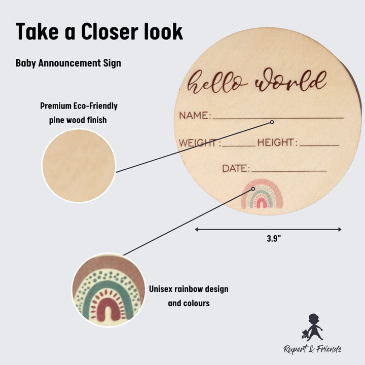 - Original Birth Announcements – Birth Announcement Sign - Hello World Newborn Sign - Celebrate The Arrival of Your Baby with This Baby Annoucement Sign - Record Birth Details on This Round Wooden Disc - Baby Name Announcement Sign by Rupert and Friends