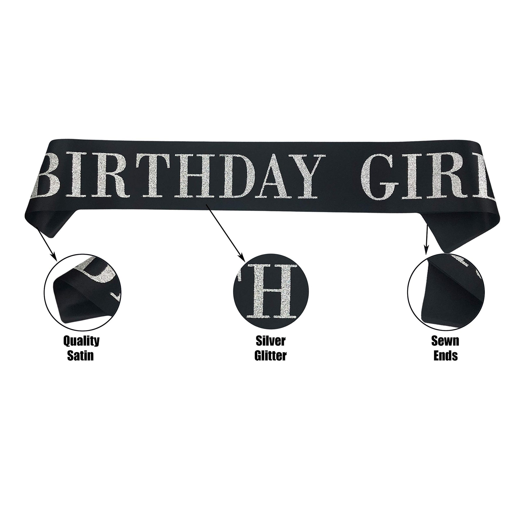 - Original Balloons – Birthday Girl Sash, Black Satin Silver Glitter Sash, Happy Birthday Princess Party Decorations, Women's Birthday Party Supplies, 16,18,21,30,40,50 or Any Other Birthday Party by The Global Genie