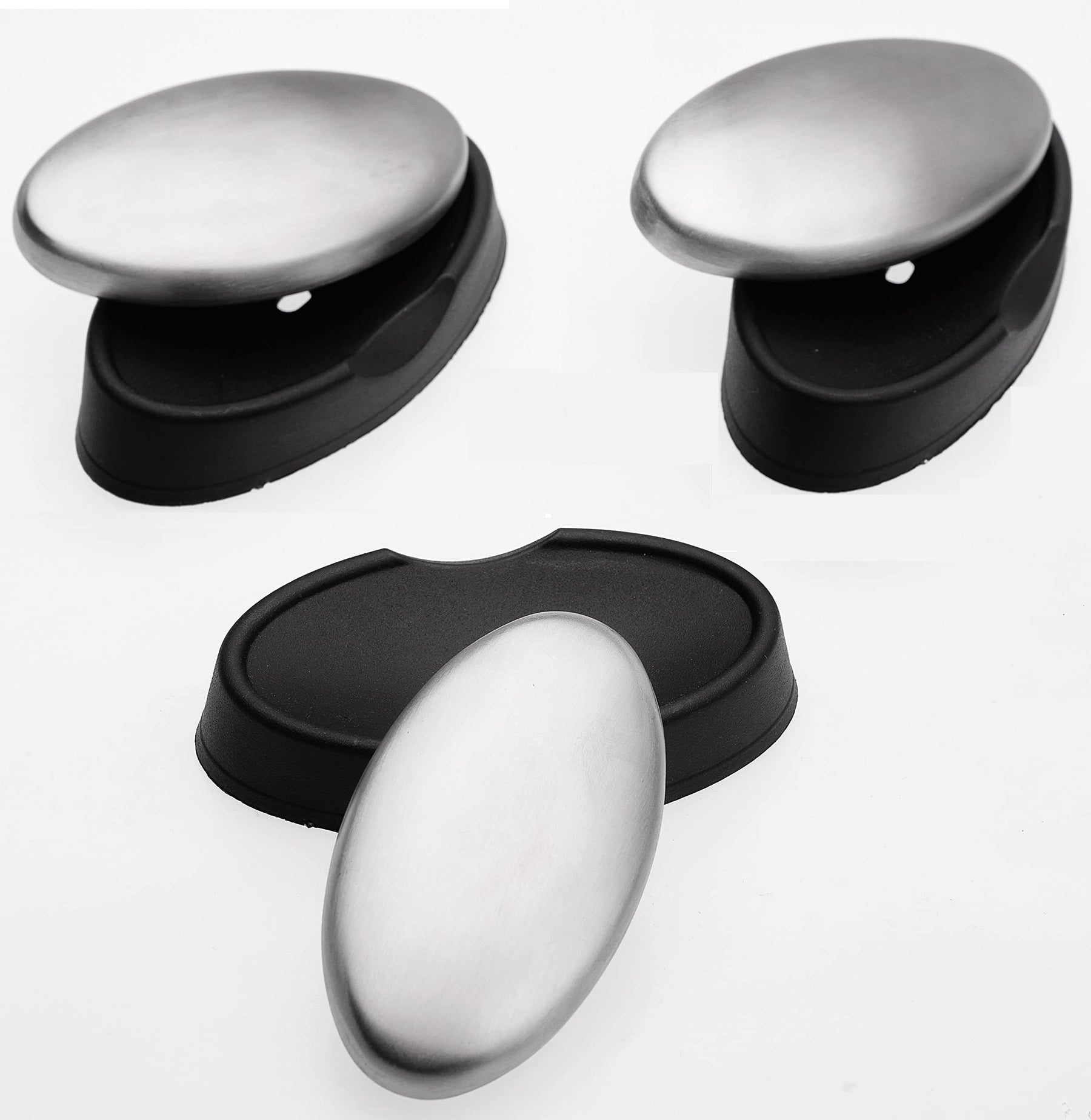 - Original Soap Dishes – Stainless Steel Soap, 3 pcs Stainless Steel Bar Soap, Metal Soap, Odor Removing Soap Bar with Soap Dish, Remove Odor of Onion, Garlic and Fish etc by BIUWING