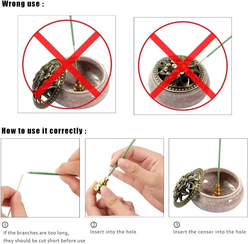 - Unique Design- Every piece is unique:1 ceramic incense burner, catches the ashes to avoid dropping everywhere. 1 brass lotus and gourd incense stick holder, which is heavy enough to hold the stick securely. 1 alloy lid, made by the hollowing design, feels solid and elegant. 1 fireproof pad, prevents excessive heat from harming the incense burner.