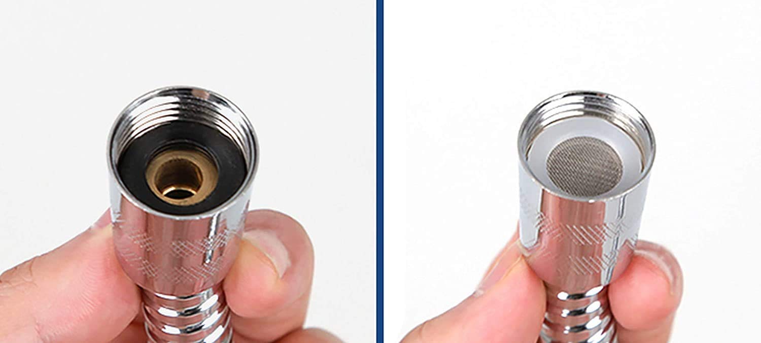 - This is the latest design of stainless steel filter in the middle of the Silicone washer.