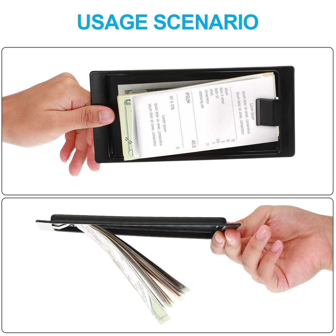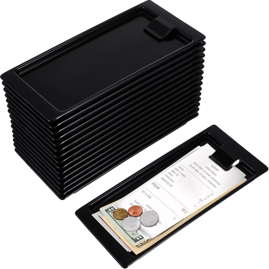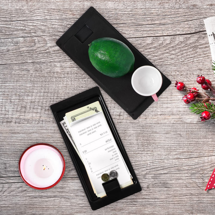 - Convenient and reasonable design: the check presenter tray is black, deep and low-key, modern and simple in appearance, with convenient clip, which can safely store checks, credit cards or cash; In addition, the rim design can prevent your items from slipping off the tray