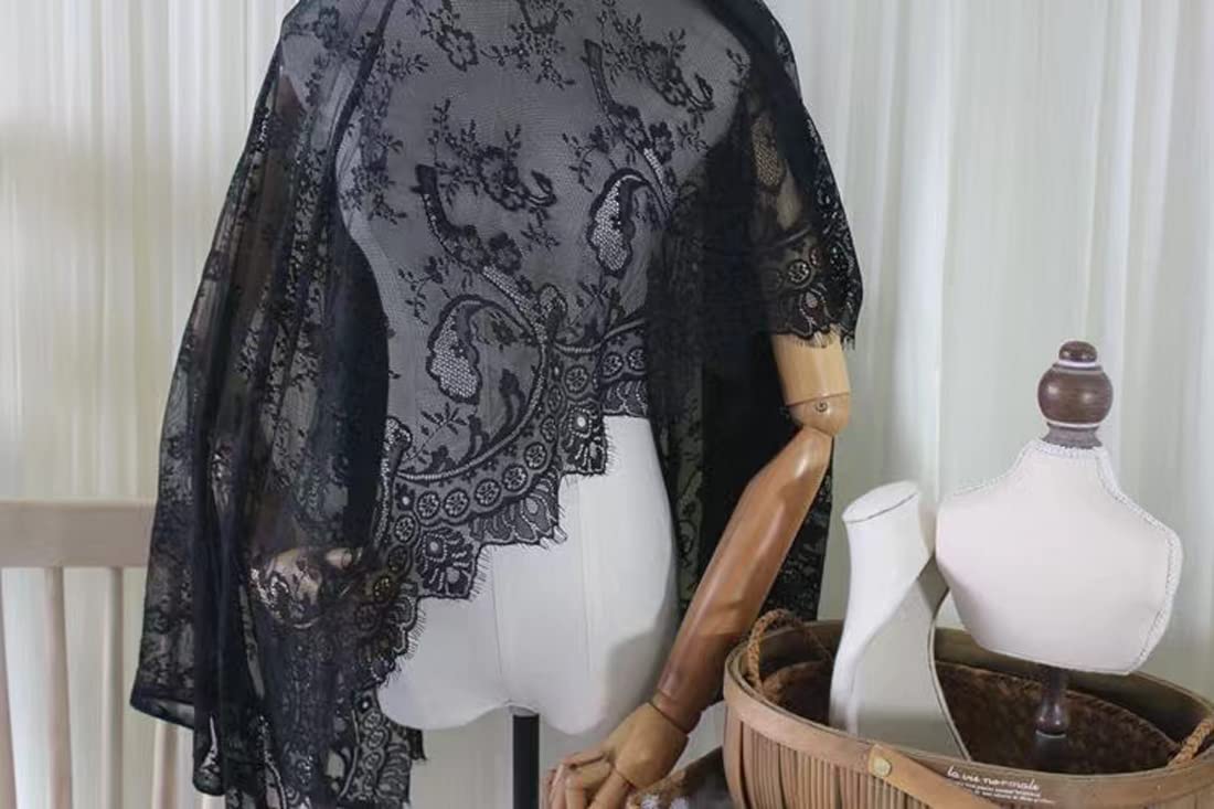 - FABRIC BLACK LACE COLOR: black, size: approx. 150 x 150cm