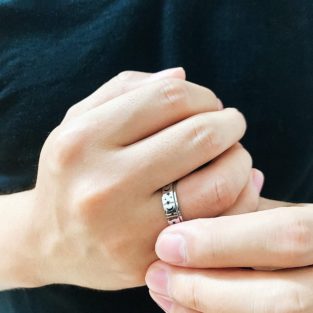 - Original Boys – Black Moon Star Rotatable Titanium Stainless Steel Fidget Band Rings for Women Men Dainty Anti Anxiety Stress Relief Spinner Rings Minimalist Statement Promise Couple Rings for Boyfriend Girlfriend Son Daughter Christmas New Year Gifts (6mm Silver, 8) by HUIZIUYUQI