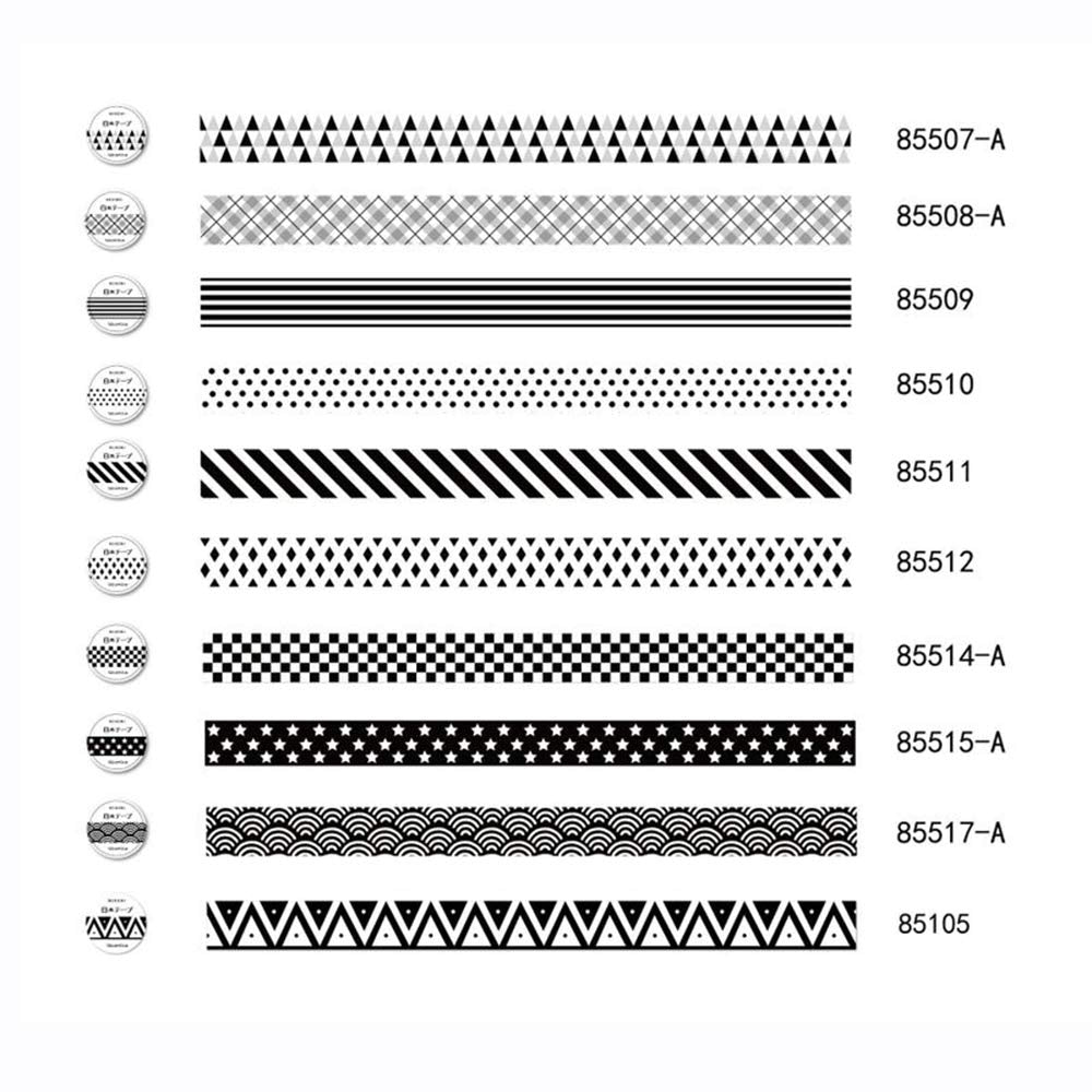 - 10 ROLLS WASHI TAPE SET: 0.4 X 0.15 Feet Long 10 Different DesignsUse, to meet multiple requirements, Classic black and white gray design with a wide variety of Geometric patterns pattern and very distinctive, Add creativity and ideas to your next scrapbook, diary, schedule, craft, or DIY decorating project. Suitable for as a gift.