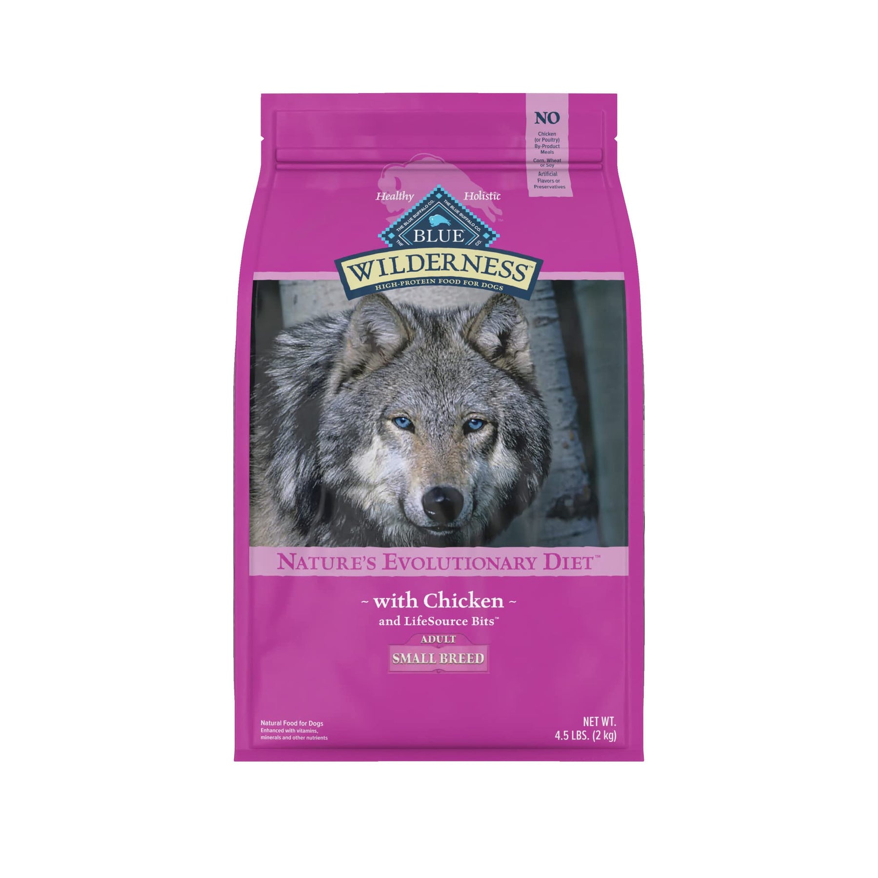 - Contains one (1) 4.5-lb bag of BLUE Wilderness High Protein, Natural Adult Small Breed Dry Dog Food, Chicken