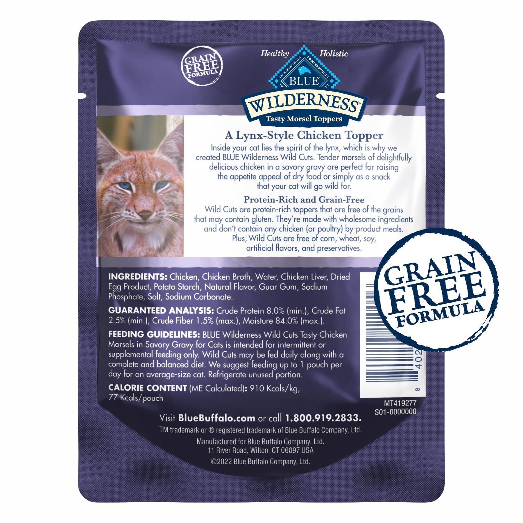 - Original Pouches – Wilderness Wild Cuts Grain-Free Wet Cat Food, Meal Toppers Made with Natural Ingredients, Tasty Chicken Morsels in Savory Gravy, 3-oz. Pouches (24 Count) by Blue Buffalo