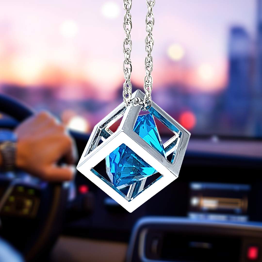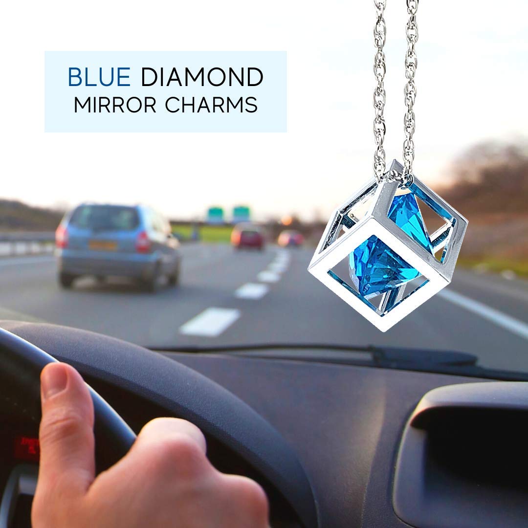 - Original Mirrors – Blue Diamond Cube Crystal Car Rear View Mirror Charms, Bling Car Accessories, Sun Catcher Hanging Ornament w/Chain, Car Charm & Home Decor Ornament (Blue) by Bling Car Decor