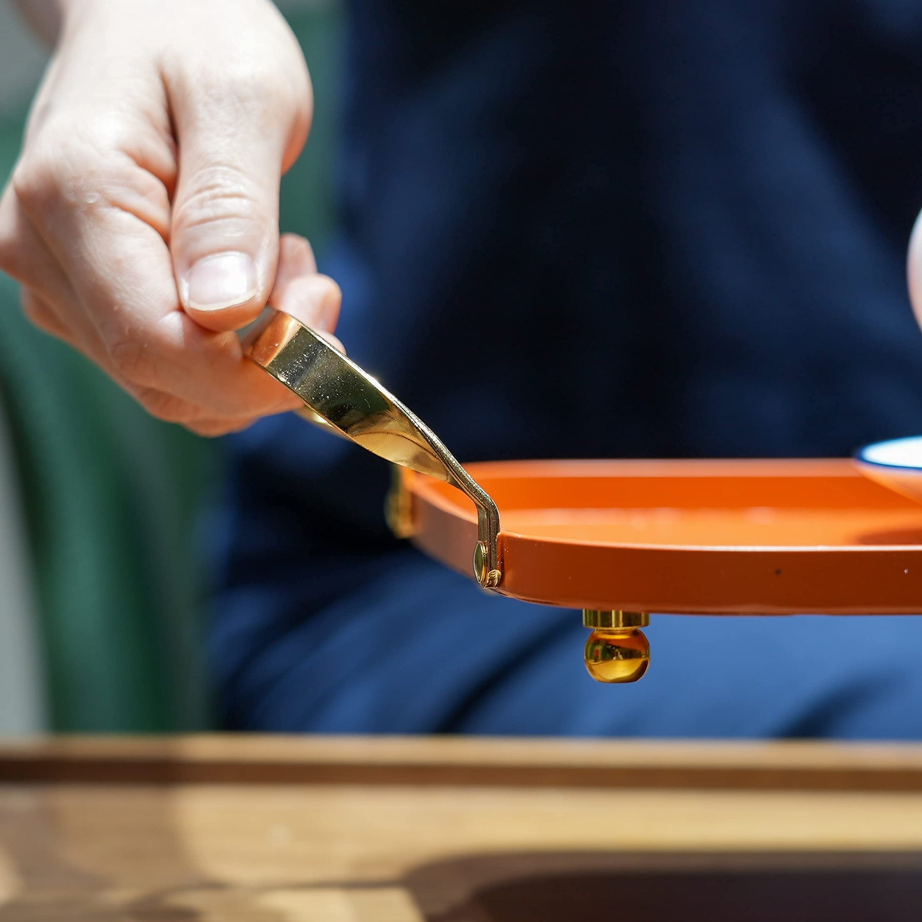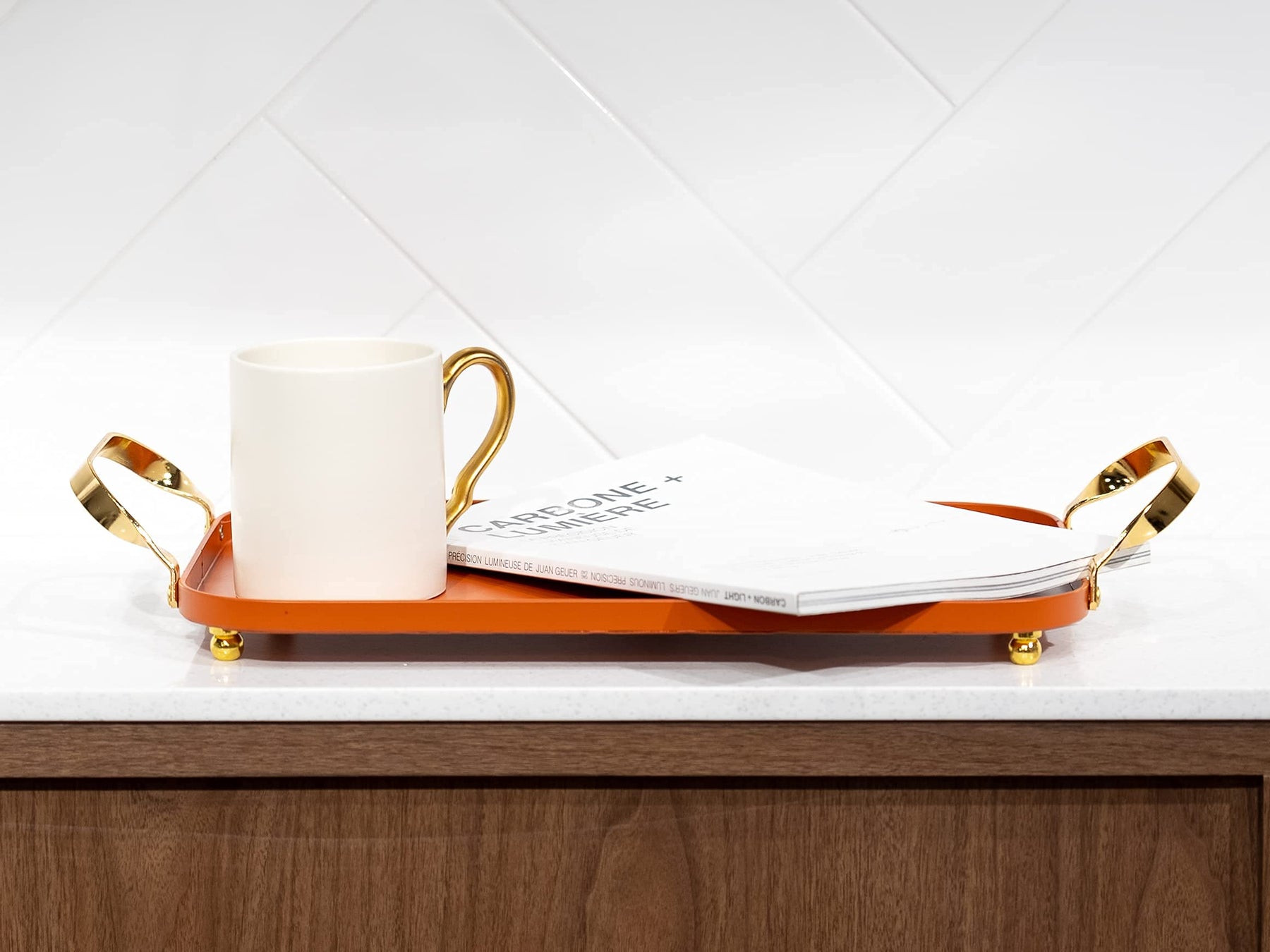 - Original – Decorative Serving Tray - Metal Serving Tray with Handles, Decorative Trays for Coffee Table, Home Decor, Vanity, Jewerly, Perfume and Make up - Bar Liquor Display with Gold Accents-Orange by BLUE GINKGO