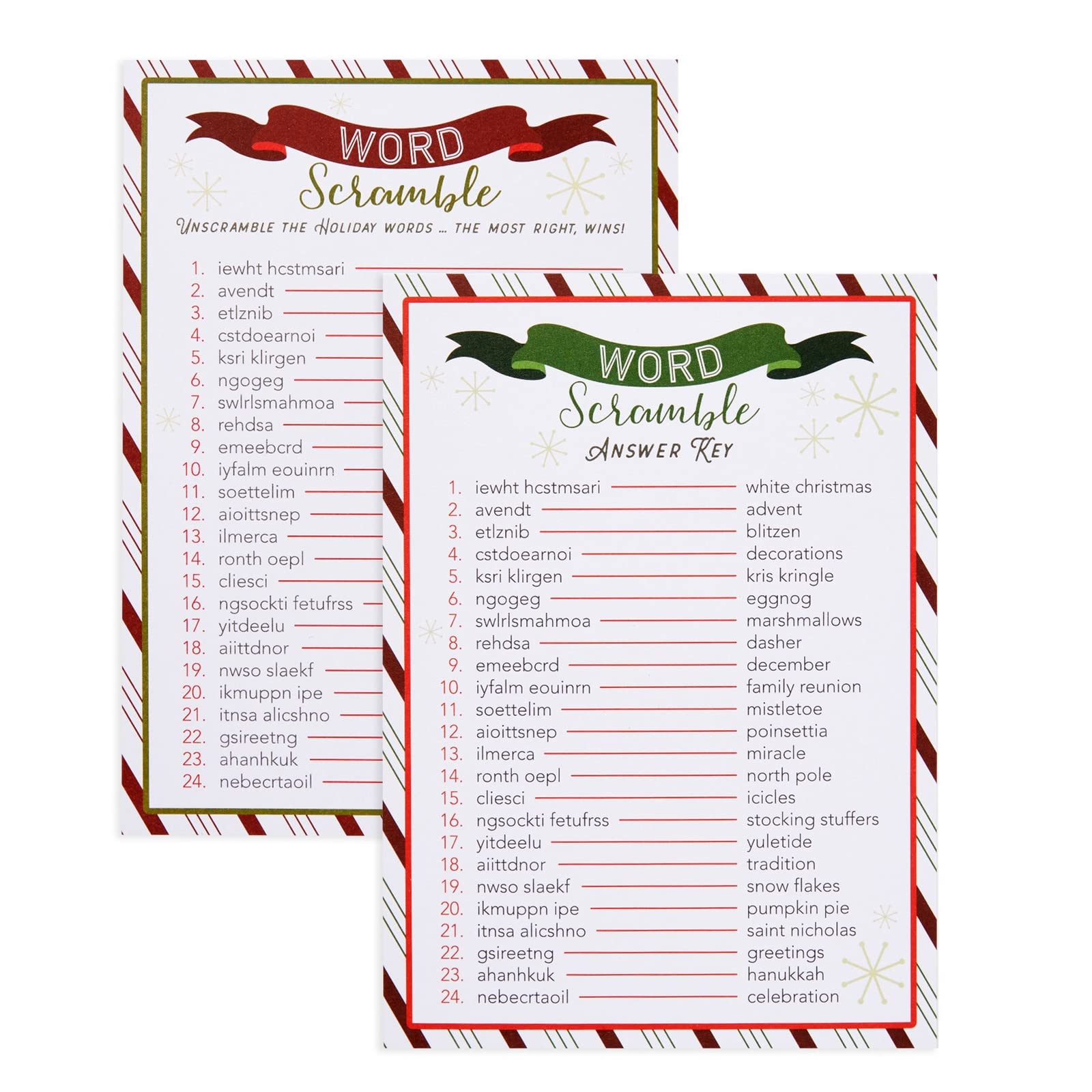 - Comes With: You will receive 50 word scramble sheets and 2 answer keys; perfect for Christmas party games for groups this holiday season