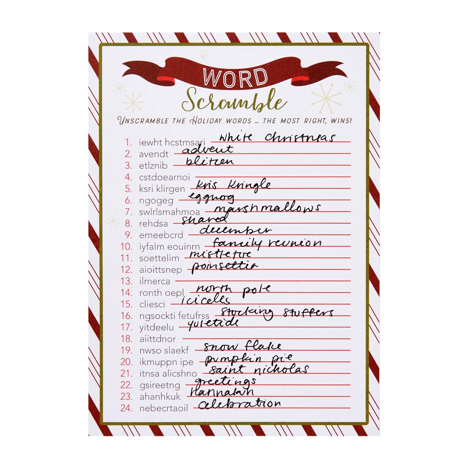 - Christmas Games for Party: This Christmas game kit includes 50 word scramble cards and 2 answer keys with classic holiday designs; light up your festive celebration with these fun game cards
