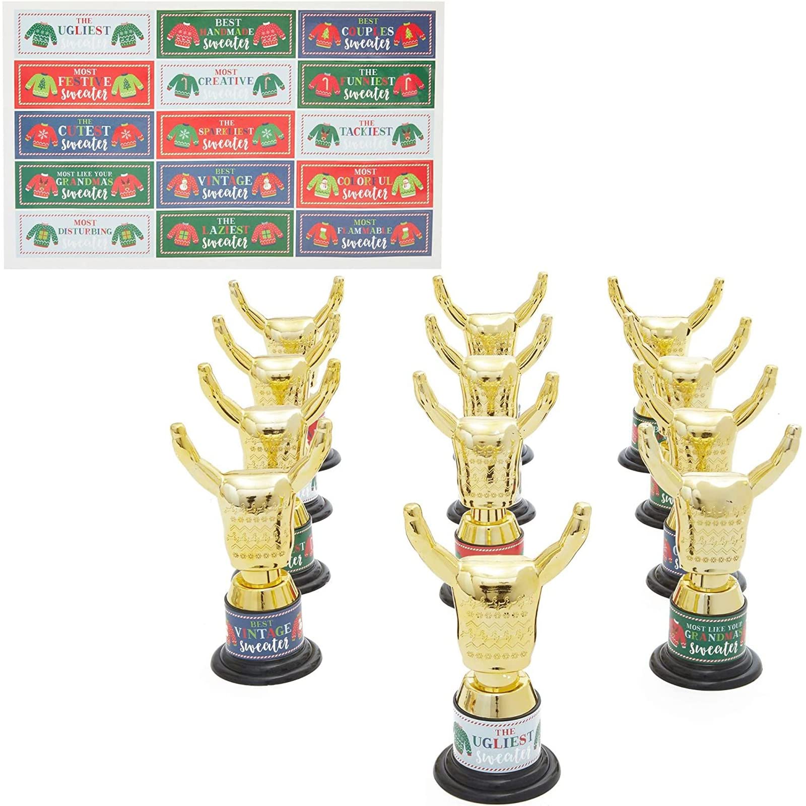 - Original Trophies – Christmas Party Ugly Sweater Award Trophy Set with Stickers – Pack of 12 by Blue Panda