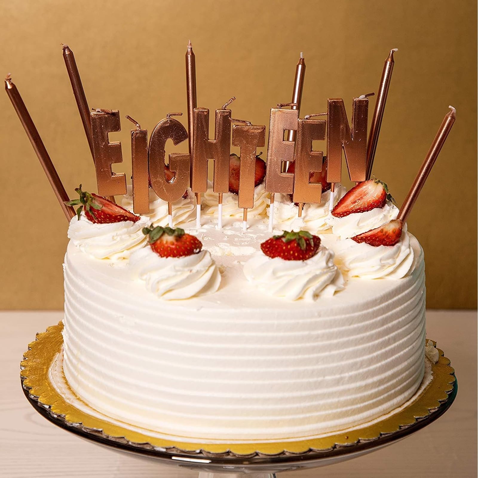 - Give your birthday cake a fun and creative look with these amazing gold metallic EIGHTEEN cake candles.