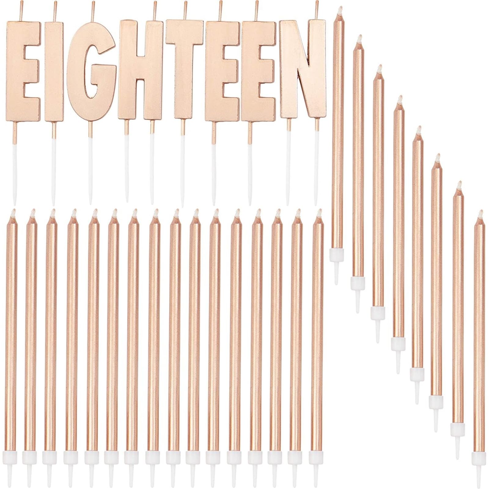 - Original Birthday Candles – Eighteen Birthday Letter Candles in Holders (Rose Gold, Pack of 32) by Blue Panda