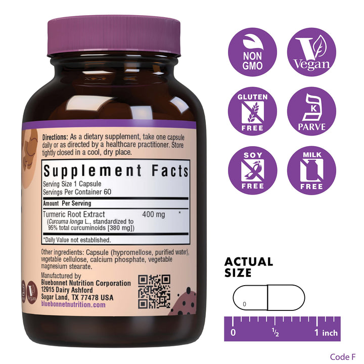 - Formulated with 400 mg Sustainably Harvested Turmeric Root Extract Standardized to 95% (380 mg) Total Curcuminoids