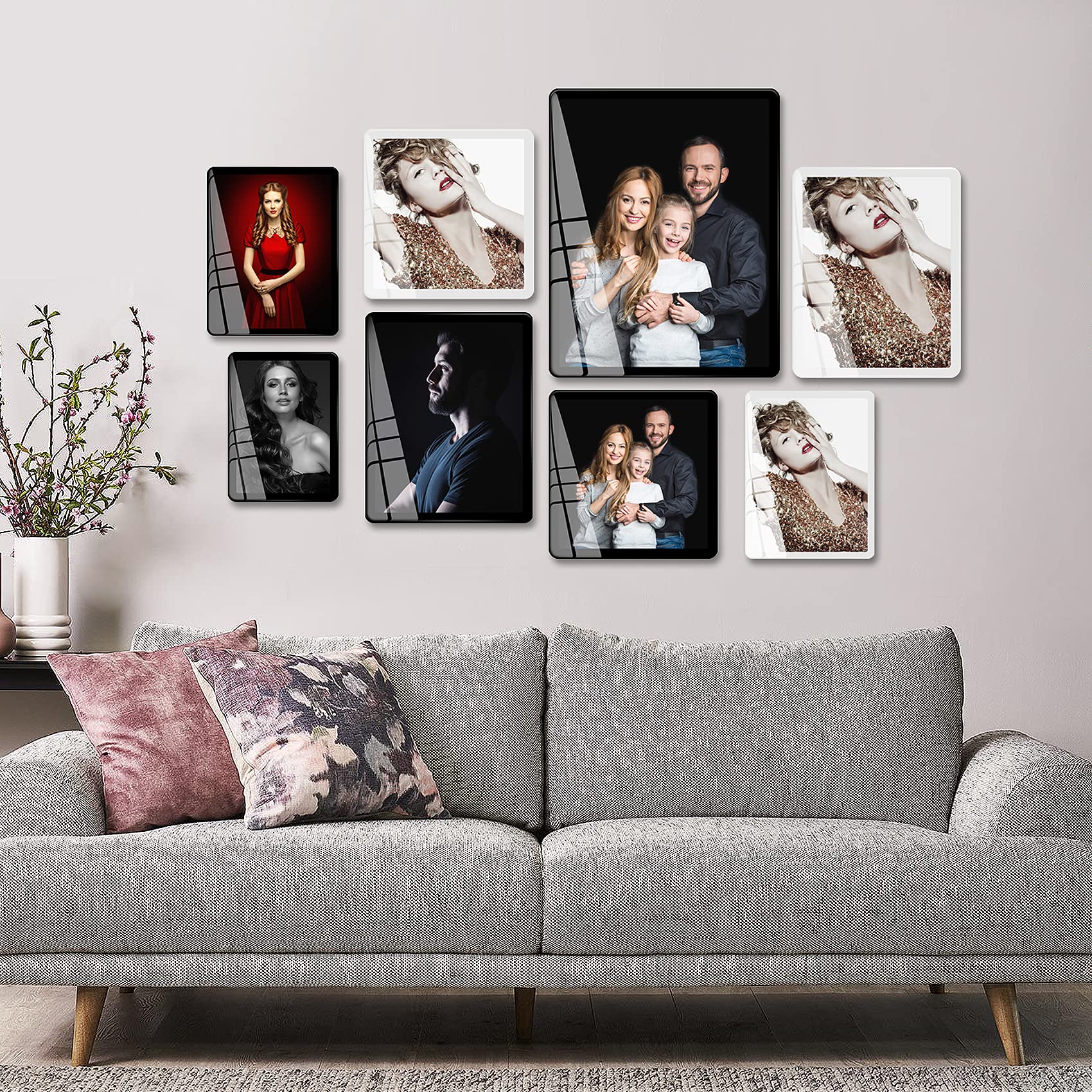 Wide range of uses: This is an exquisite photo frame, frameless picture frames 8x10 ,Print your favorite pictures or photos to replace the core, The 8x10 picture frame black thin can decorate your family photo, baby photo, Graduation photo , wedding or anniversary party photo, etc. enough to decorate many places, such as living rooms, cafes, offices, bedrooms, Gym,Sports venues,etc.