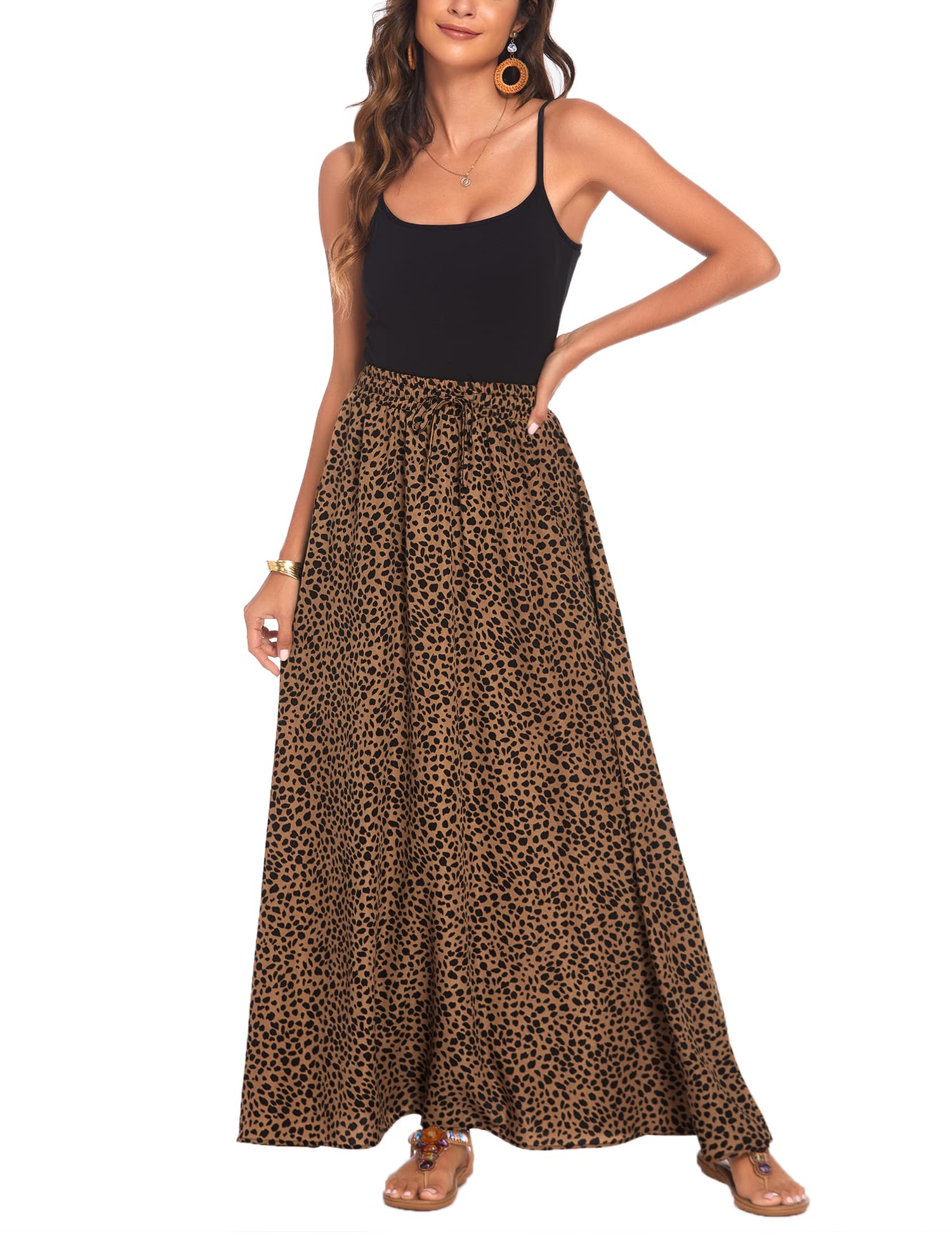- Fashion Design: Leopard print casual A-line maxi skirts with pleated elastic high waisted design, soft material, floor length, simlpe basic style, easy to dress up and down.