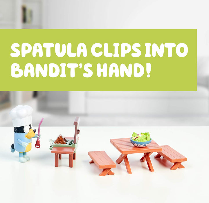 - Bluey'S Dad Bandit Is Ready For A Cook Out! Help Him Grill A Delicious Meal On The Bbq With The Backyard Mini Playset.