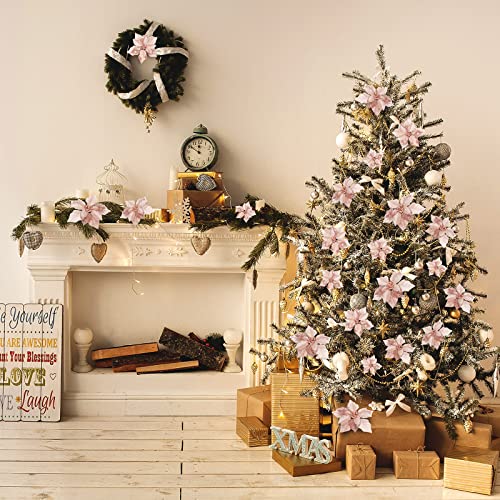 - Original Artificial Flowers – 24 Pieces Christmas Artificial Glitter Poinsettia Flowers Xmas Flowers Wedding Christmas Tree New Year Ornaments(Rose Gold) by Boao