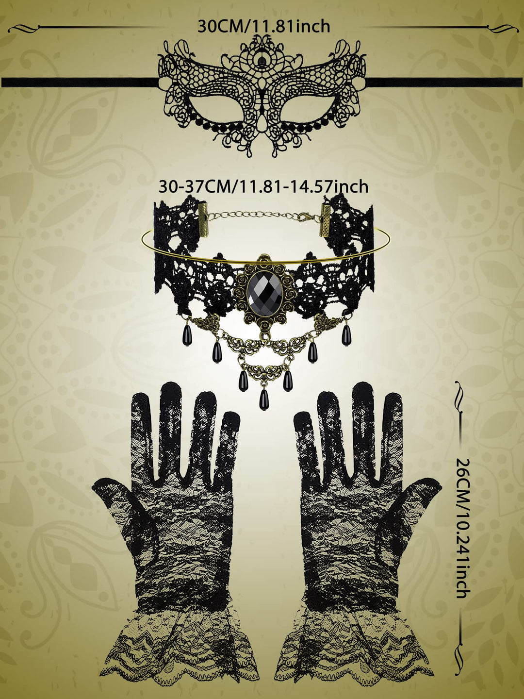 - Package contents: package includes 1 piece of masquerade mask, 1 pair of lace gloves and 1 piece of black choker lace necklace