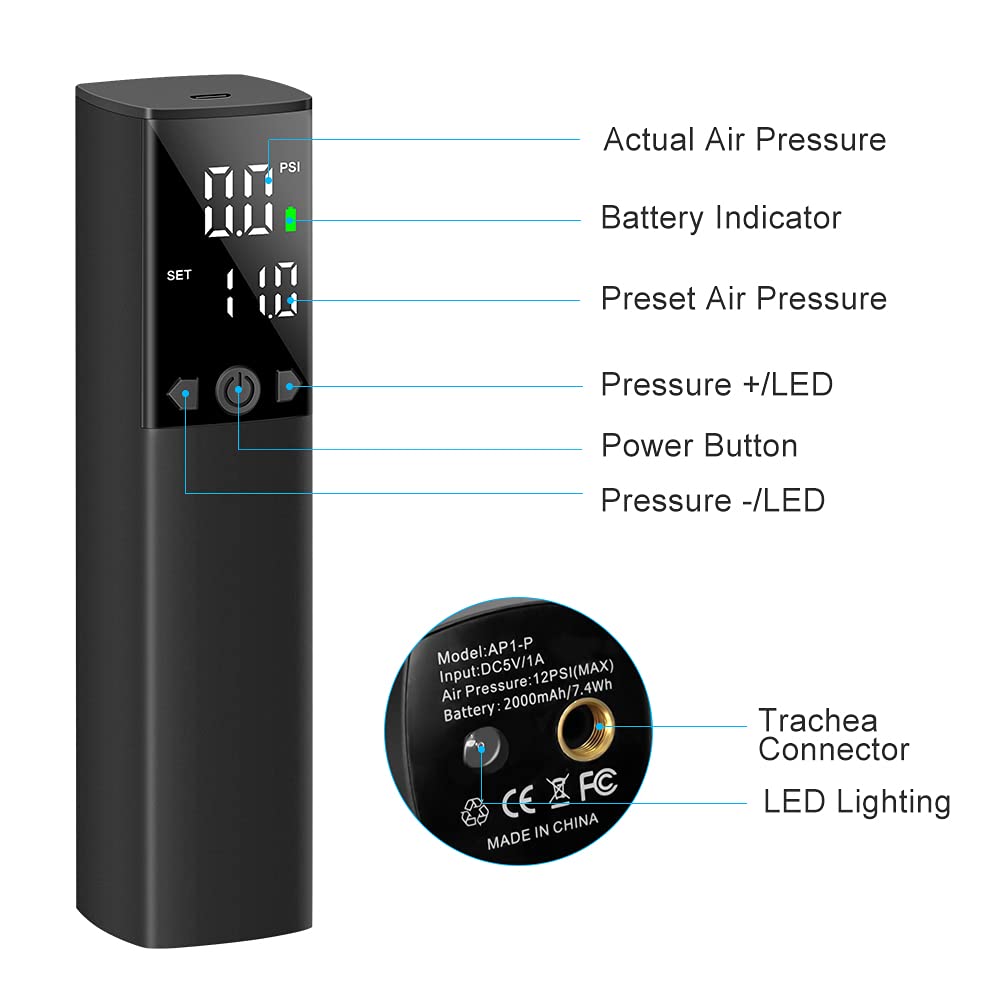 - Portable and LightweightThe size of the ball pump is 6.29 * 1.57 * 1.57inch, weight: 0.55LB. It fits in a bag or pocket. Allows you to take this mini pump where you might need it. Due to the stylish and compact design, this electric ball pump saves more space and is easy to carry out.