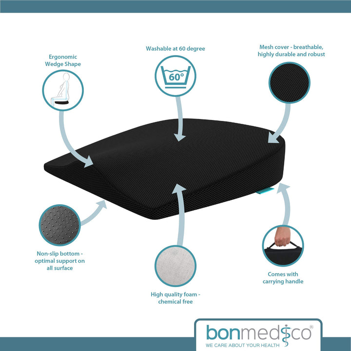 - Original Lifting Cushions – Orthopedic Wedge Seat Cushion, Ergonomic Seat Cushion for Car Seat Driver and Office Chair - Comfortable Seat Pillow for Driving and Travel - Wellness (Black) by bonmedico