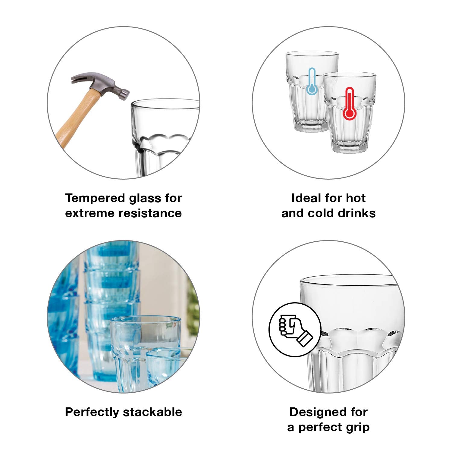 - Original Tumblers & Water Glasses – Rock Bar Stackable Beverage, Set Of 6 Dishwasher Safe Drinking Glasses For Soda, Juice, Milk, Coke, Beer, Spirits – 12.5oz Durable Tempered Glass Water Tumblers For Daily Use by Bormioli Rocco