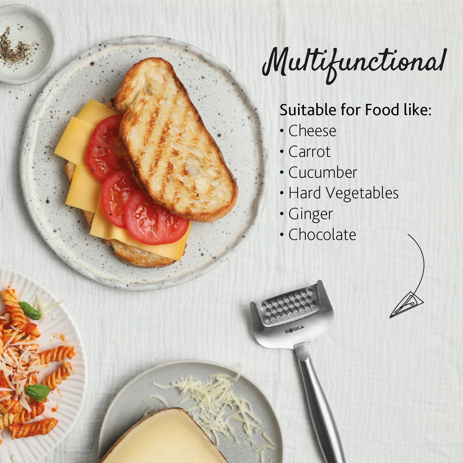 | included components | BOSKA Cheese Grater, Stainless Steel, Copenhagen Collection |