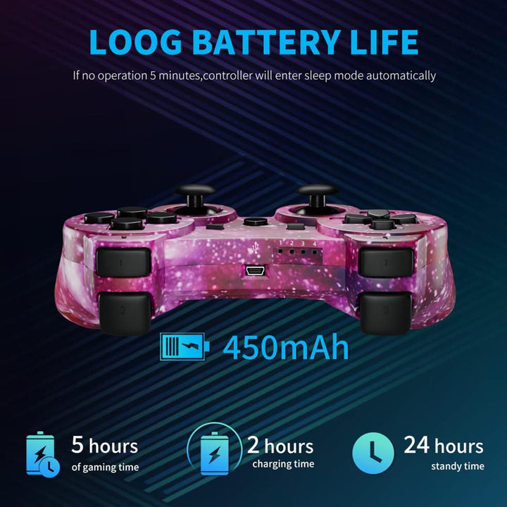 - Ergonomic design handle: the most classic shape PS3 controller perfectly fit Palms, all the buttons and controls make your hand very comfortable for Long periods of gameplay. It must be a big surprise when your kids or your friends receive these beautiful controllers.