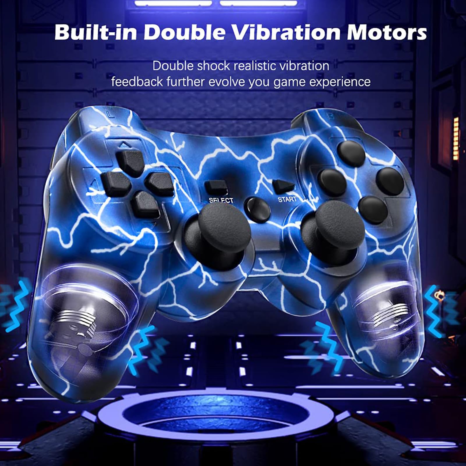 - Double shock: our PS3 wireless controller built in two electric motors makes each hit, crash and explosion is more Excite and realistic, You will feel the Rumble in the palm of your hand