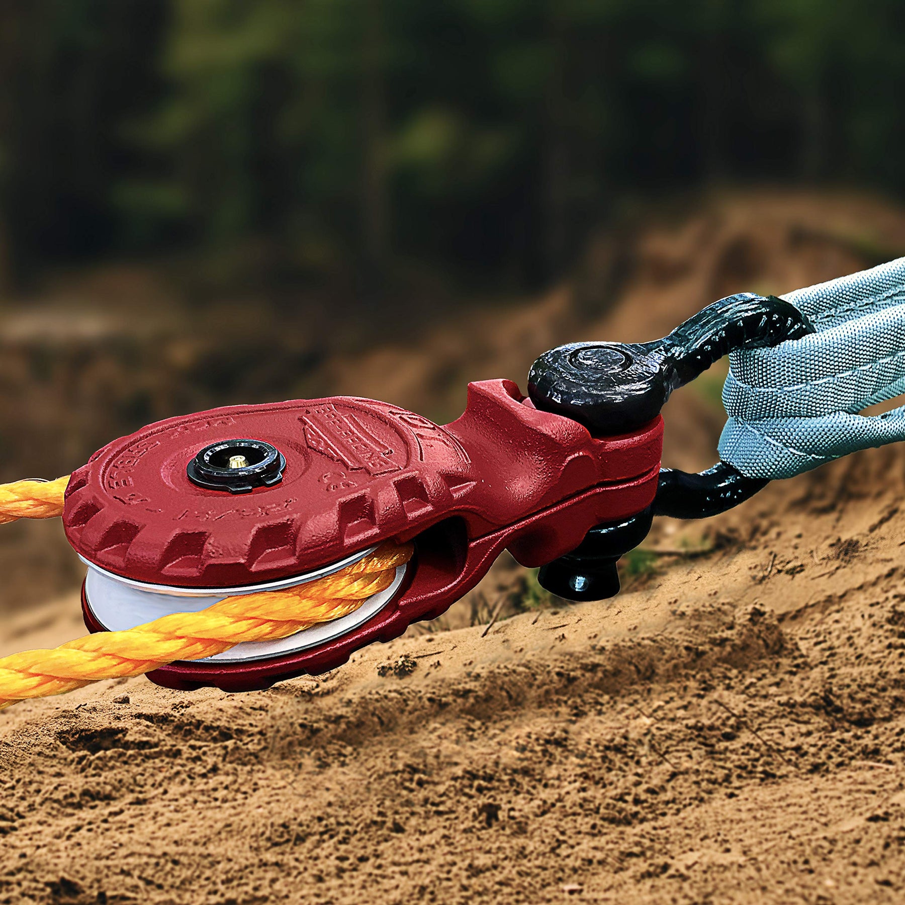 - WORKS WONDERS WITH MOST ROPE OR STEEL CABLES: Use our universal pulley block with any winch rope or steel cable up to 15/32” (12mm) to tow your car with ease and precision. Plus, the super strong aluminium pulley wheel allows you to easily change the direction of your off-road recovery without damaging the rope used.