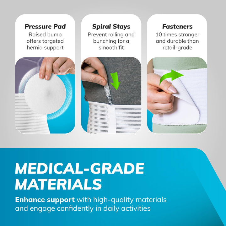 - Abdominal hernia belt for men and women: Our abdominal binder provides compression and pressure at the umbilical, incisional, epigastric, ventral, or inguinal hernia location site; wear after surgery or during daily activities for fast recovery without complications