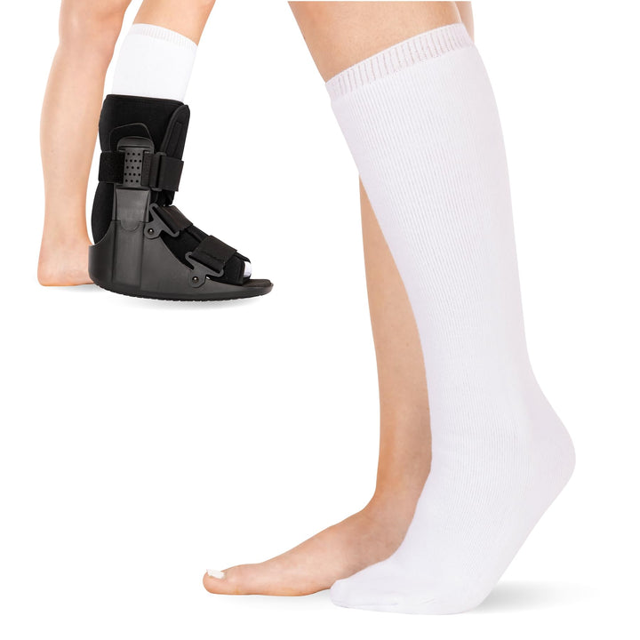 BraceAbility’s medical socks for orthopedic walker boots are an inexpensive add-on that can make wearing any type of walking boot a more pleasant experience. Adding a sock to the equation helps reduce friction between the brace and your skin, which can help prevent any chafing or blisters.