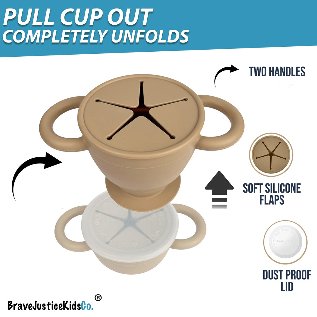- Original Food Storage – KidsCo., Snack Attack II Snack Cup, Collapsible Silicone Snack Container, Toddler and Baby Snack Catcher Lid (Warm Sand) by BraveJustice