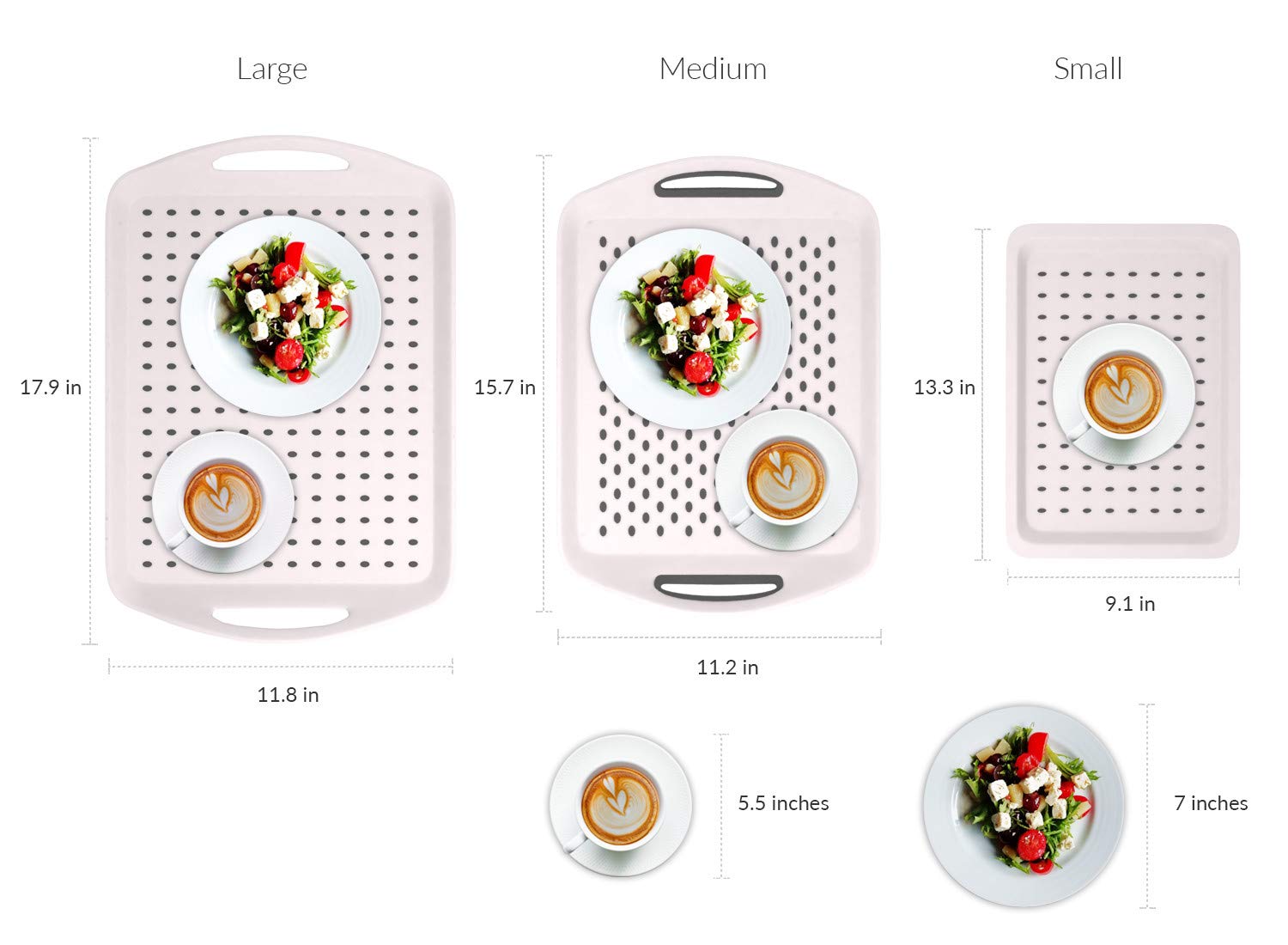 - Original Serving Trays – 3PC Anti-Slip Food Serving Tray with Handles 17.9 + 15.7 + 13 Dinner Trays for Lap + Small Drink Tray, Breakfast Tray, Bed Tray, Food Tray, Lap Trays for Eating, Serving Trays by Bravi Kitchen