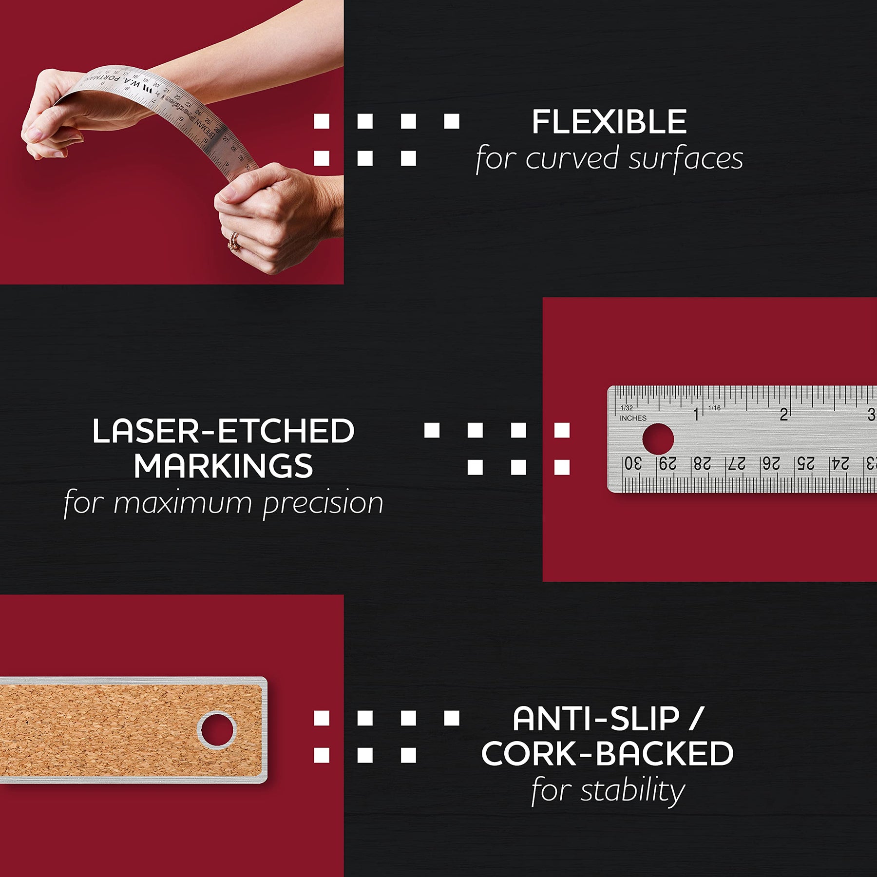 - Precision You Can Rely On - We designed each precision cork back ruler with the measurement markings to be clearly etched in the stainless ruler metal because you can't afford to make mistakes. No more relying on a basic wood straight edge ruler with faded markings