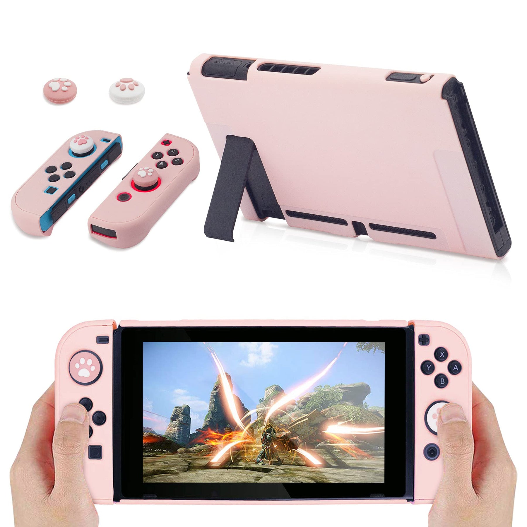 - Dock Friendly Pink Cover SetProtect your switch with lightweight, Smooth,and impact resistant case! The Joystick cover is made of PC materials, which has an excellent smooth hand feel. It can fit the dock and won't add unnecessary size or weight. Professional design fits perfectly with your Switch and all release buttons are very easy to get to.