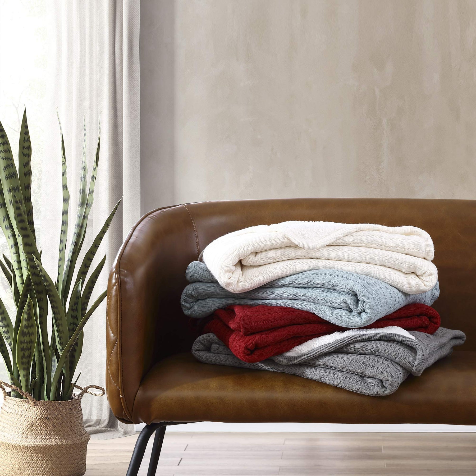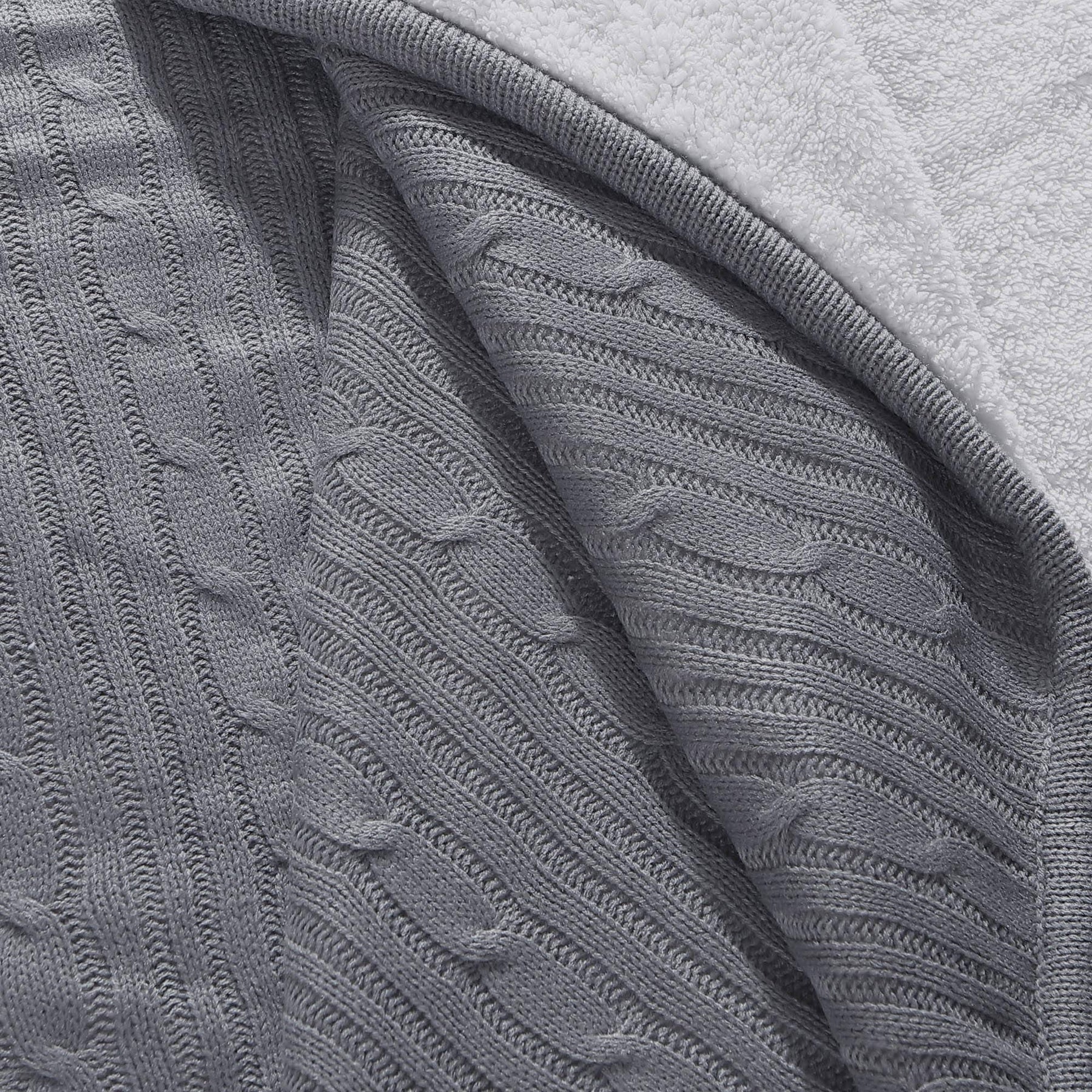 - Original Throws – Cozy Cable Knit Throw Blanket - All Season Chic Thick Sweater Knitting for Couch Sofa Bed with Soft Sherpa Lining, Grey by Brielle Home