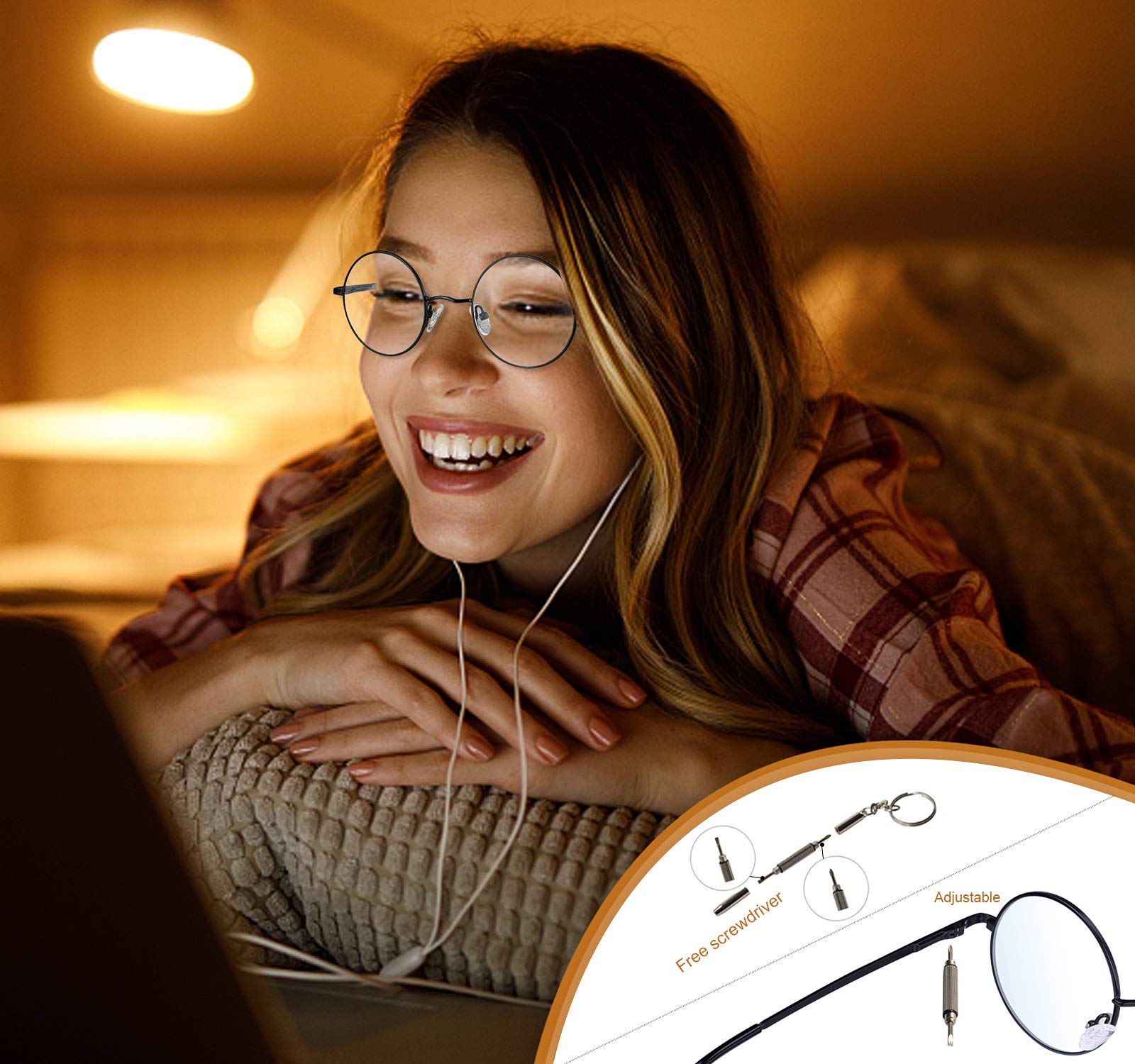 - FASHION DESIGN -- It's perfect choice for Party, Fishing, Golf, Shopping, Travelling and all outdoor activities. Circle Blue Light glasses are classic and timeless. People always have passion on vintage look. Unisex style for both men and women.