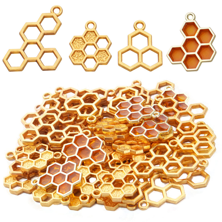 - Original Charms – 50pcs Enamel Honeycomb Charms Pendants Alloy Bee Honeycomb Open Back Bezel Pendant for Necklace Bracelet DIY Crafts Jewelry Making Accessories by BronaGrand