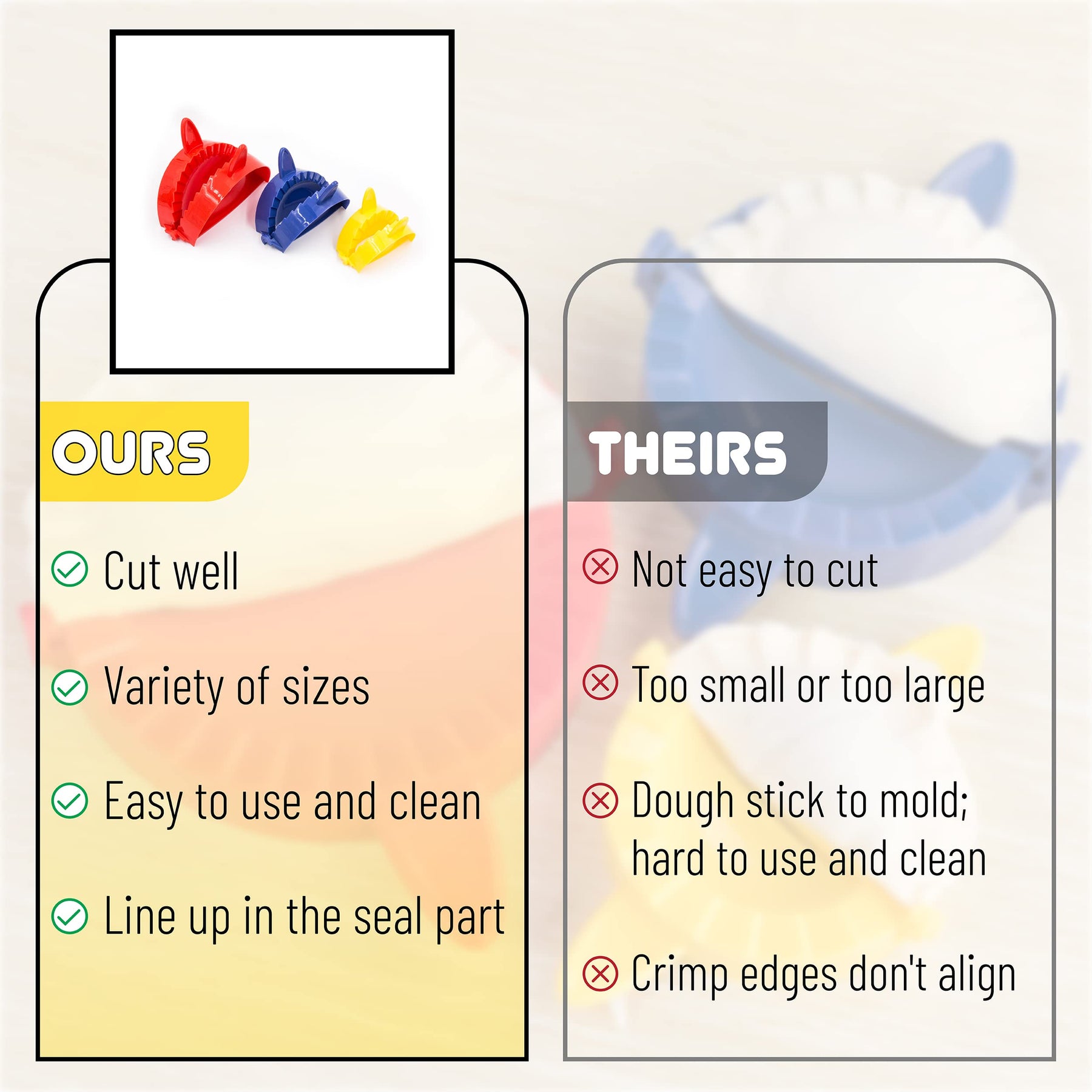 - With three different sizes, this set allows for a range of uses, from small dumplings to larger pastries, ensuring you have the right tool for any dough-pressing need.