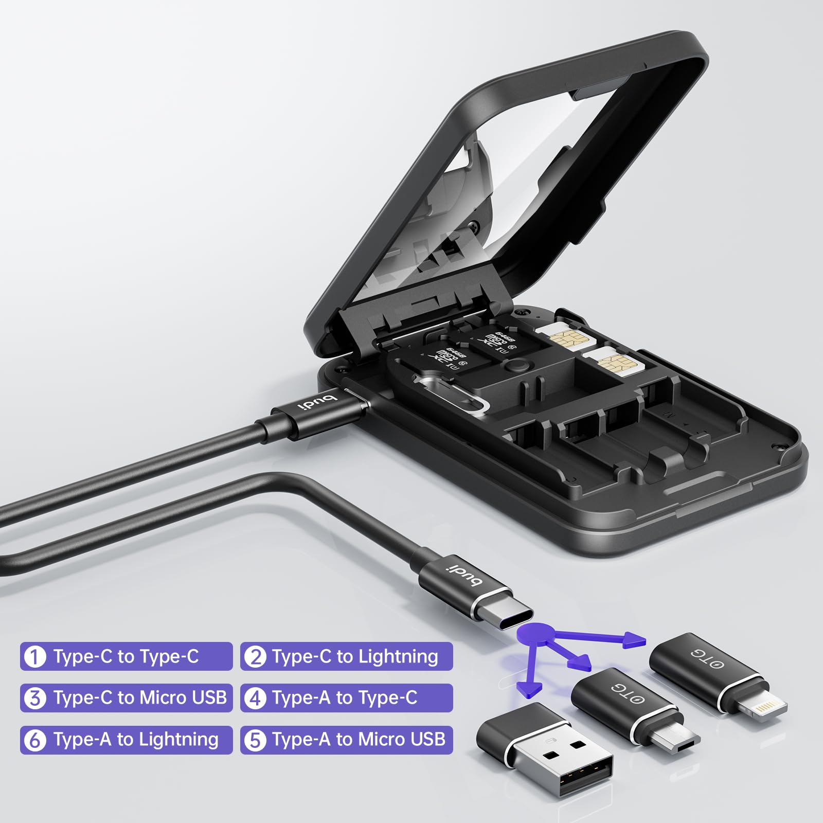 - Original OTG Adapters – 15W Wireless Charger Multifunction Box 2.9ft Cable Card USB Type-C Charging and USB C to USB A Light Aluminum Conversion Connector for Travel Charging PC Data Transfer (Classic) by BUDI