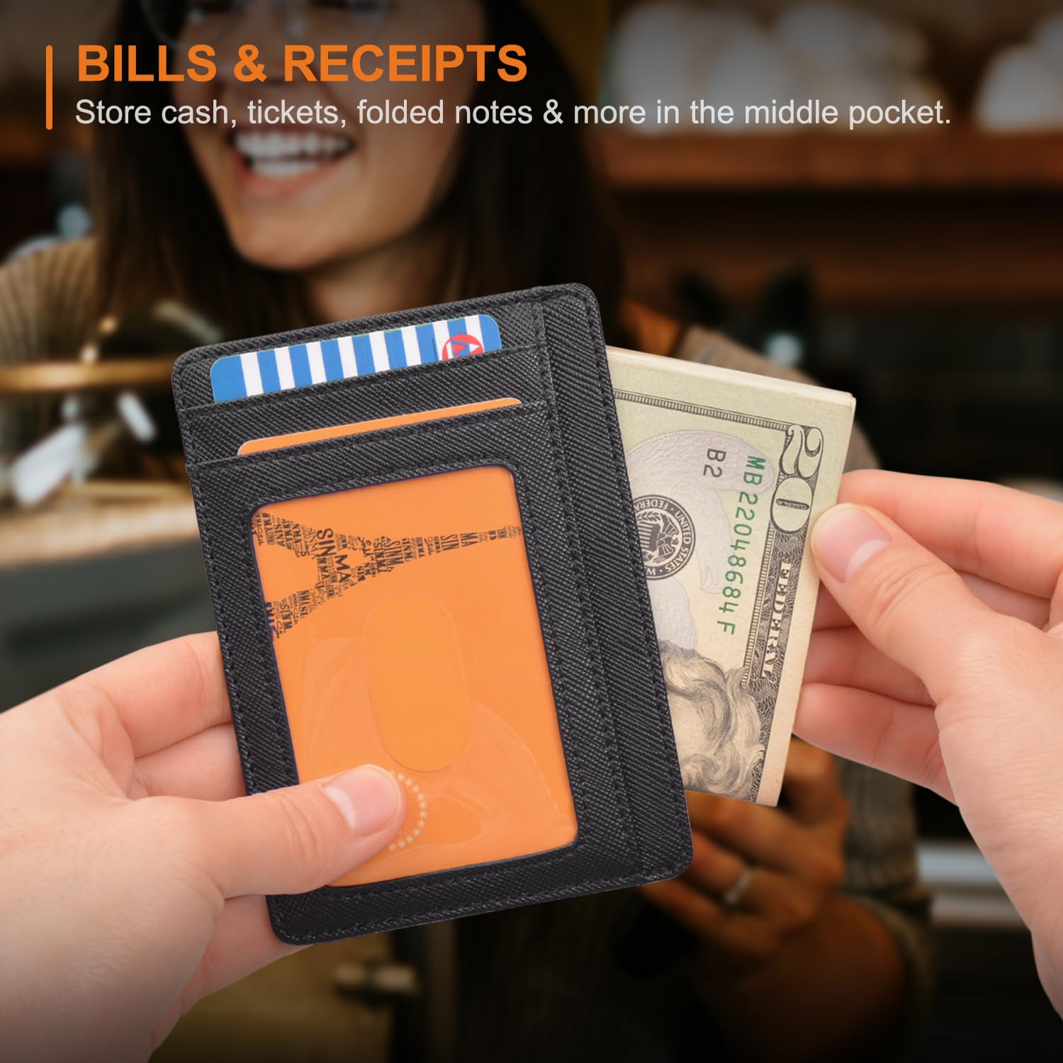 - EFFECTIVELY BLOCKS RFID SIGNALS: Outfitted with advanced RDIF blocking technology, these slim wallets for men and women block electronic signals to keep your identity protected while you travel, shop or explore.