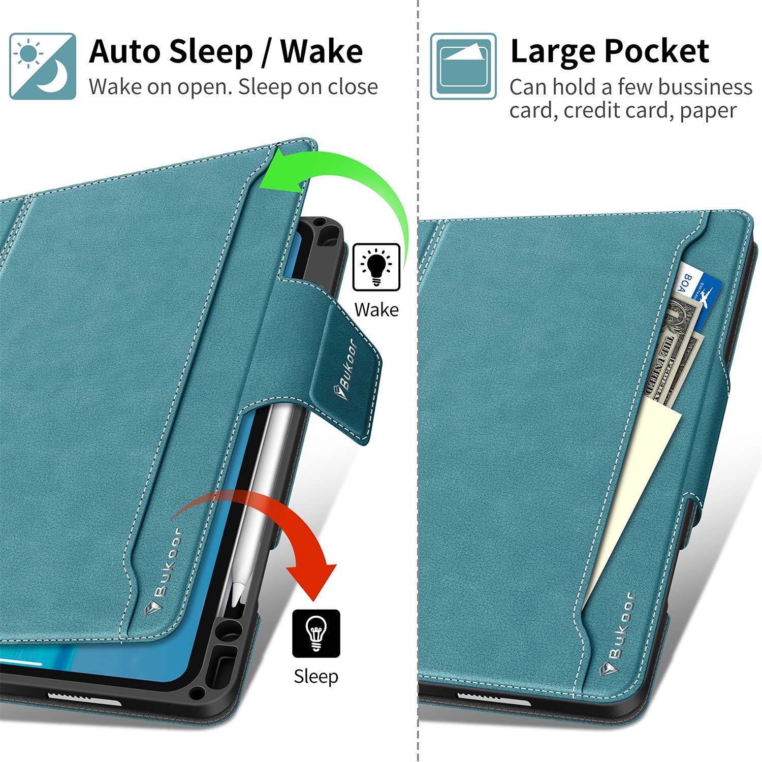 - Original Cases – BuKoor iPad Pro 11 inch Case 2022 4th/3rd/2nd/1st Generation Case (2021/2020/2018) with Pencil Holder, Auto Sleep/Wake Function Smart PU Leather with Pocket Shockproof Magnetic Clasp Cover (Green) by Bukoor
