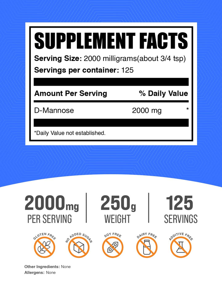 - Original Multivitamins – .com D-Mannose Powder - D-Mannose Supplement, D-Mannose 2000mg - Urinary Tract Health, Unflavored & Gluten Free - 2000mg per Serving, 250g (8.8 oz) (Pack of 1) by BulkSupplements