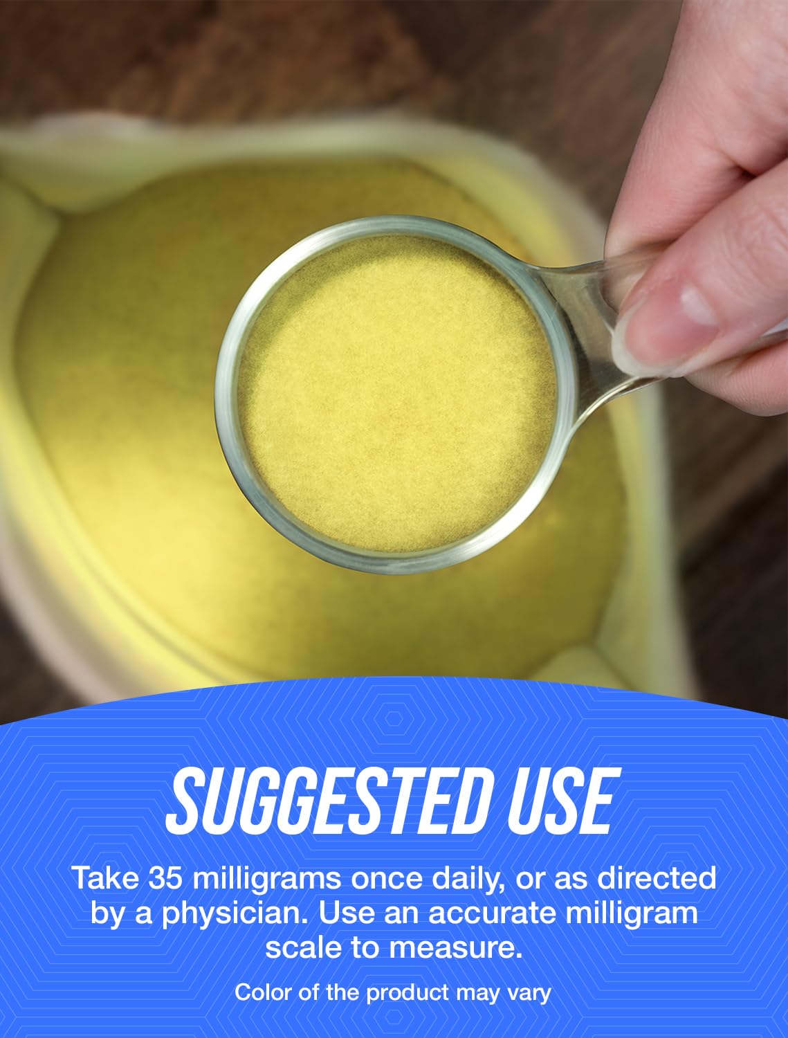 | directions | As a dietary supplement, take 35 mg once daily, or as directed by a physician. Use an accurate milligram scale to measure. |