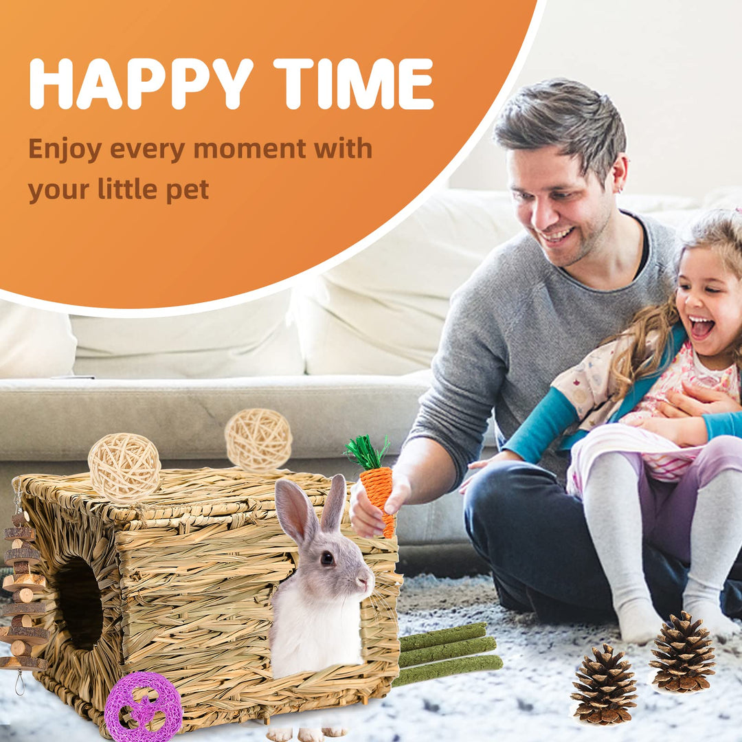 - SIZE: The size of bunny grass house is 11.8x7.87x9.02inch/30x20x23cm, completely enough length and width enable more kinds of animals to regard the pet mat as a wonderful place to chew and train their teeth