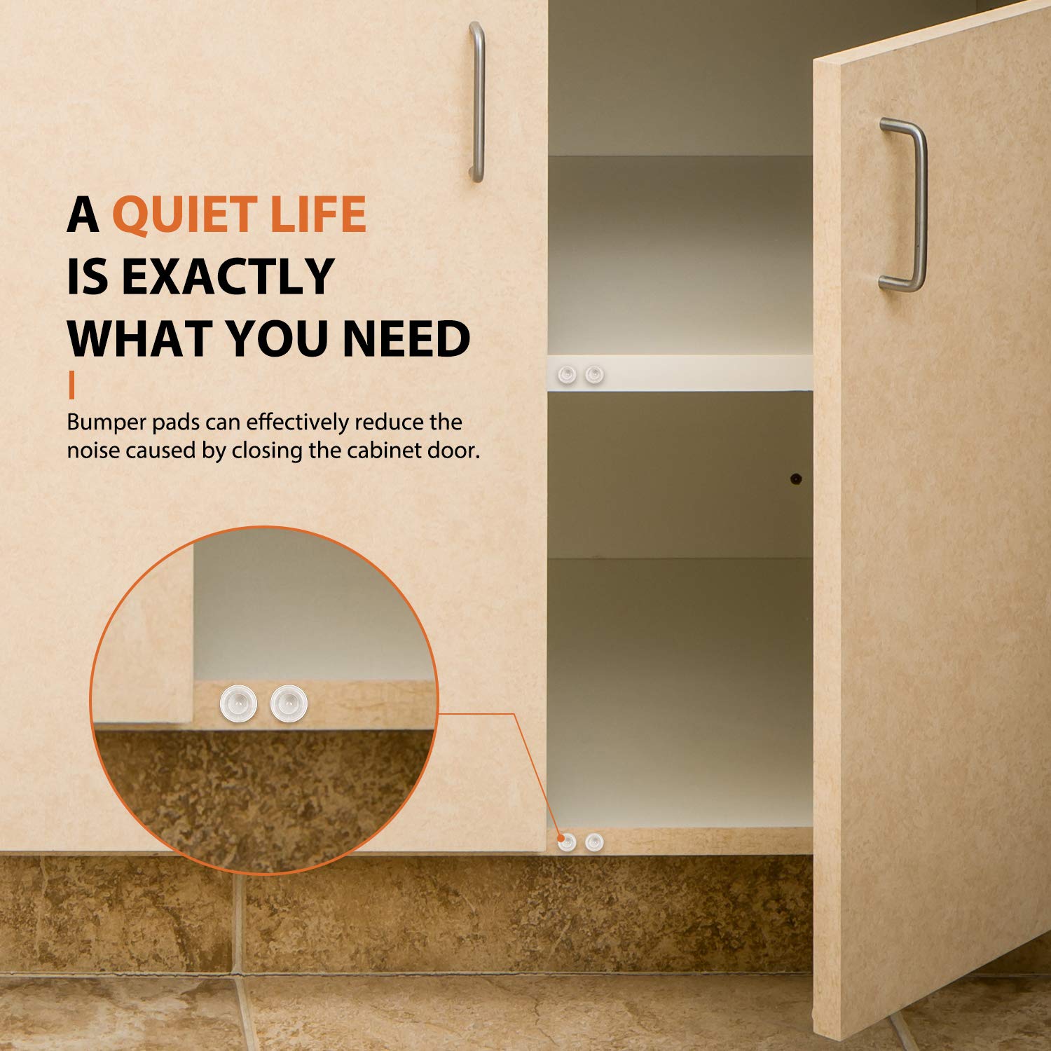 - Noise Dampening, Surface ProtectingRubber bumper pads not only help to reduce the noise caused by a closing cabinet door, but also prevents surface damage in some cases behind doors, drawers, picture frames, tables, and chairs. This cabinet cushion pads can maximize prevent damage to furniture.