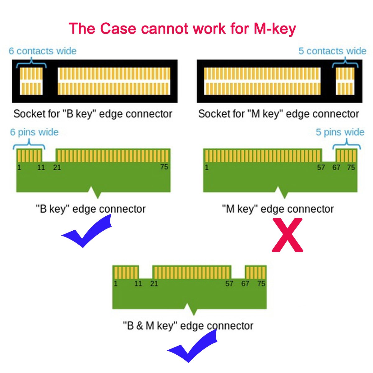- The adapter only work for B-key or B/M-key socket NGFF SSD, cannot work for M-key socket.