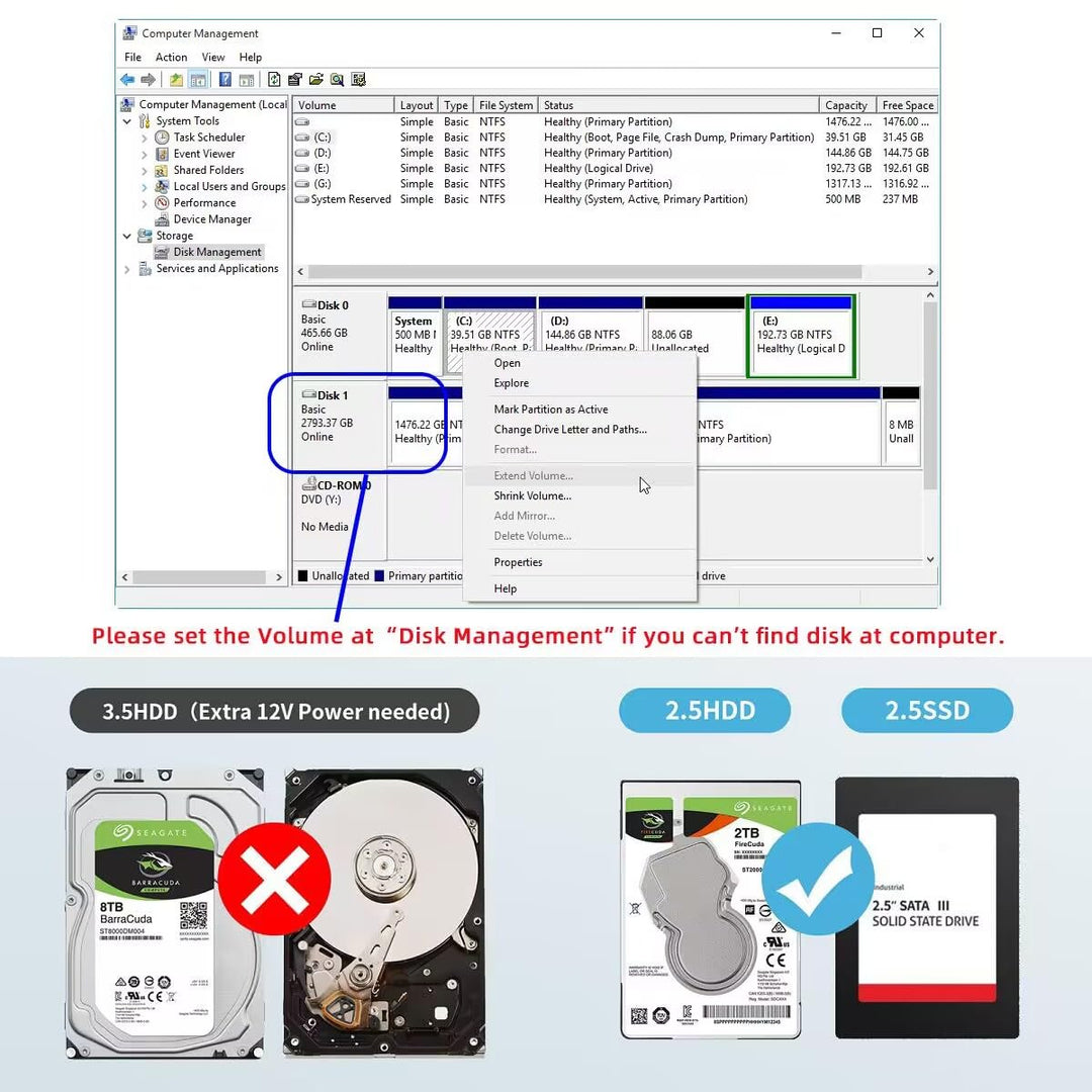 - Supports 2.5 Mass Storage Class Drive. (Not work for 3.5 Disk)